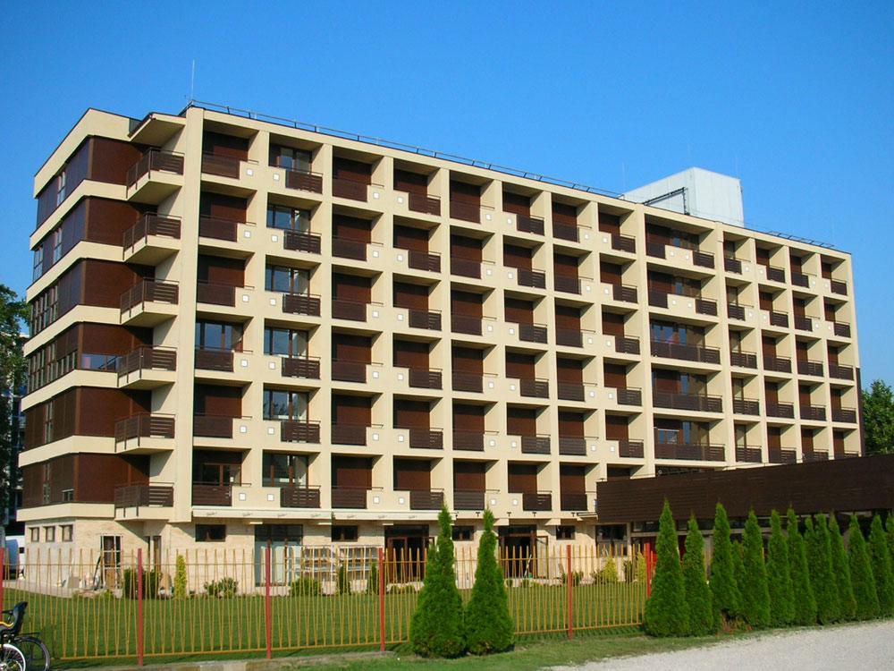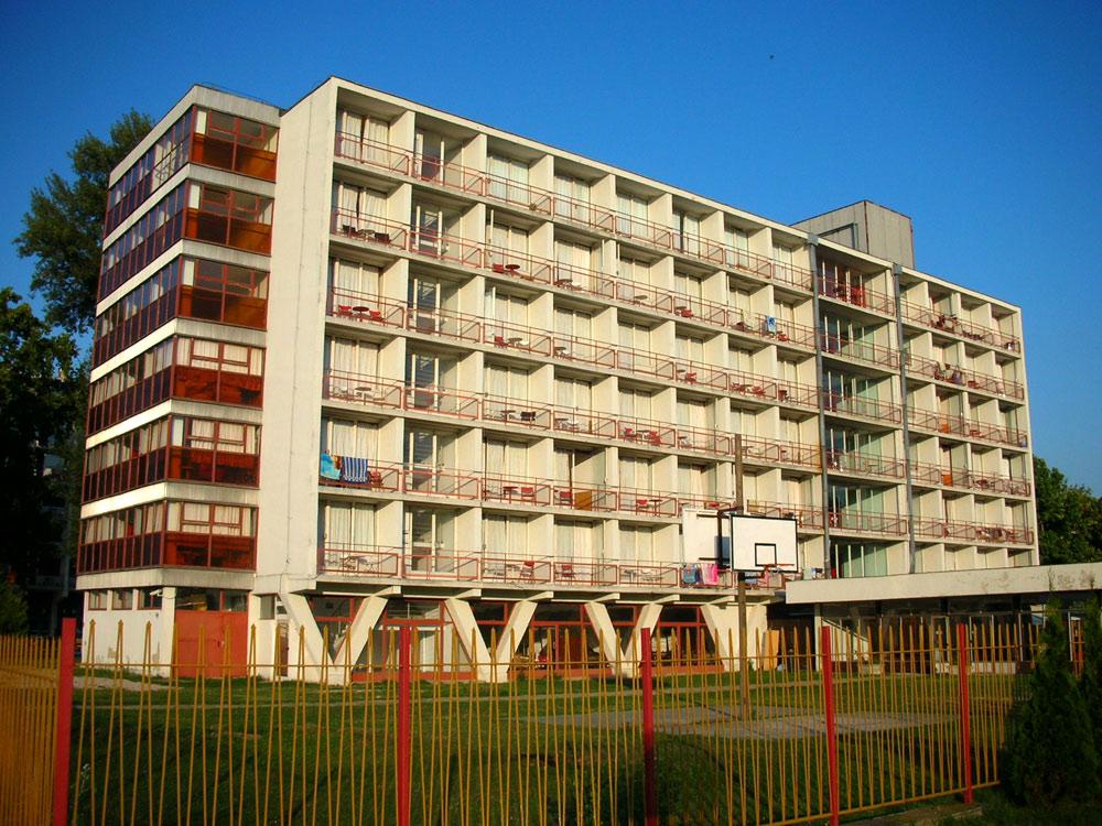A szállók földszintjén a Petőfi sétány felőli oldalon idegenforgalmi kirendeltség, posta, fodrász és egyéb szolgáltató létesítmények kerültek elhelyezésre. A gépkocsik parkolása a szállodák mentén, a zöldterületen kívül megoldott. F: architecahungarica.hu
